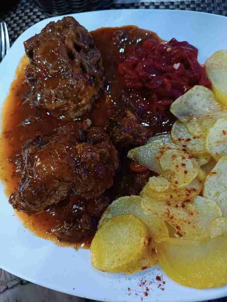 In Rueda Ochsenschwanz (sehr zart/mürbe, das Paprikagemüse oben rechts mit guter Säure)