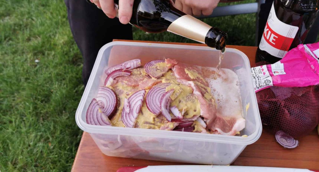 Besagte Herrschaften und Schwägerin. Ein Foto von meinen morgigen Gastgebern, die schon mal das Grillfleisch vorbereiten