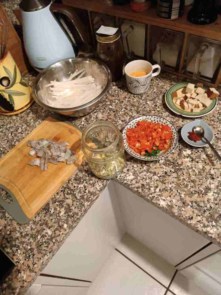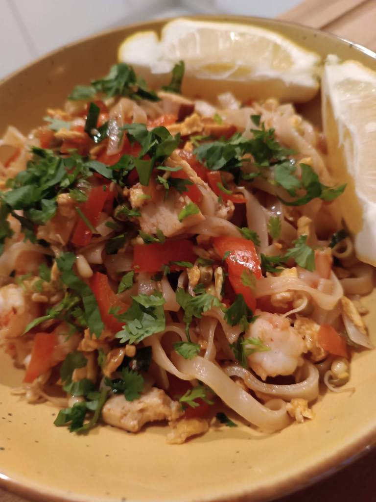Abends Pad Thai – diesmal ein anderes Rezept (aus dem Buch von gestern) – sehr lecker, sehr!!