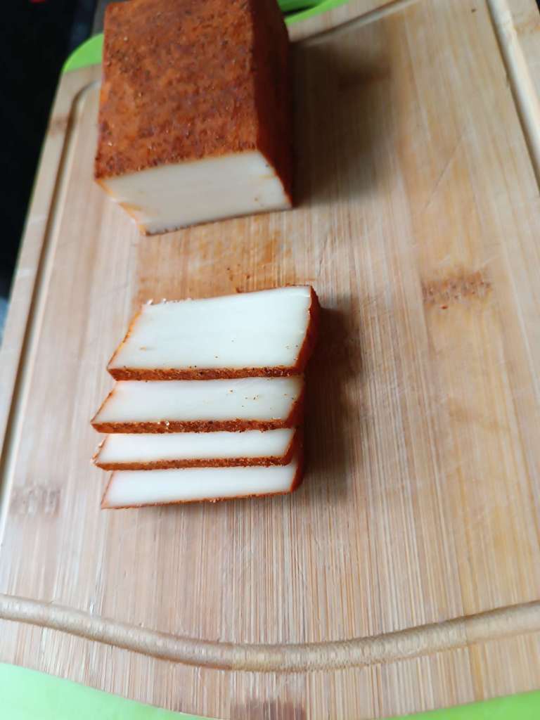 Ich werfe einen Blick auf den gestern geräucherten Käse, sieht gut aus, riecht gut, bin gespannt.
