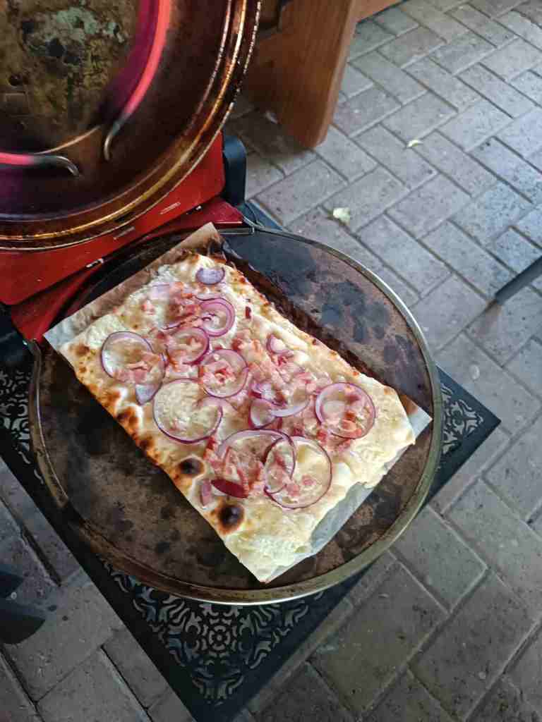 Flammkuchen, gebacken im Pizzaofen