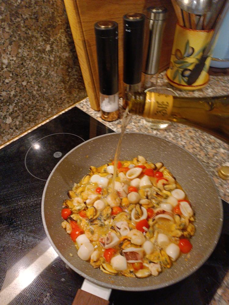 Vinho Verde, zum kochen habe ich Sauvignon Blanc genommen (und getrunken).