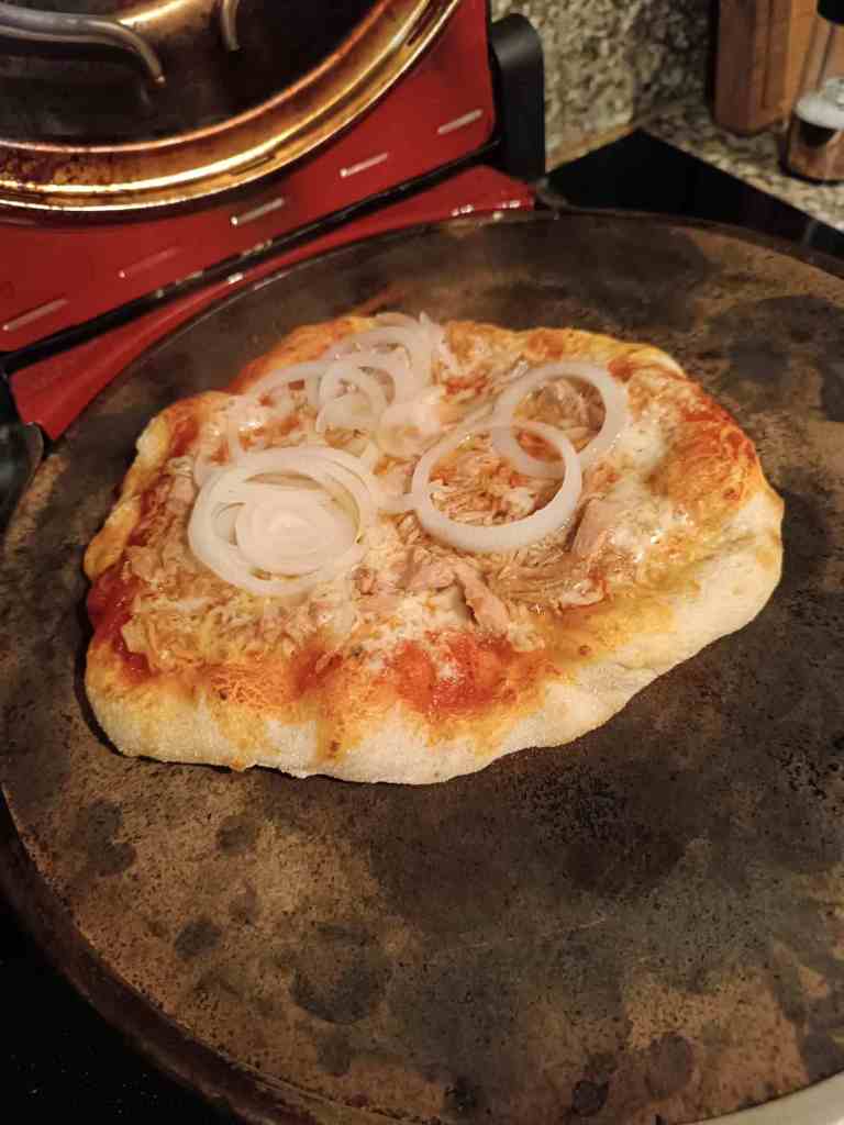Pizza (aus Teig, den ich eingefroren hatte. Hat erstaunlich gut funktioniert)