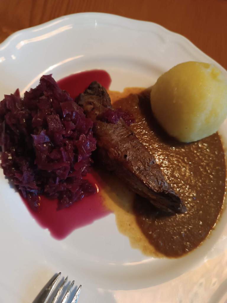 Wildschweinfilet mit Rotkraut und Klössen – gekocht von der Gästin