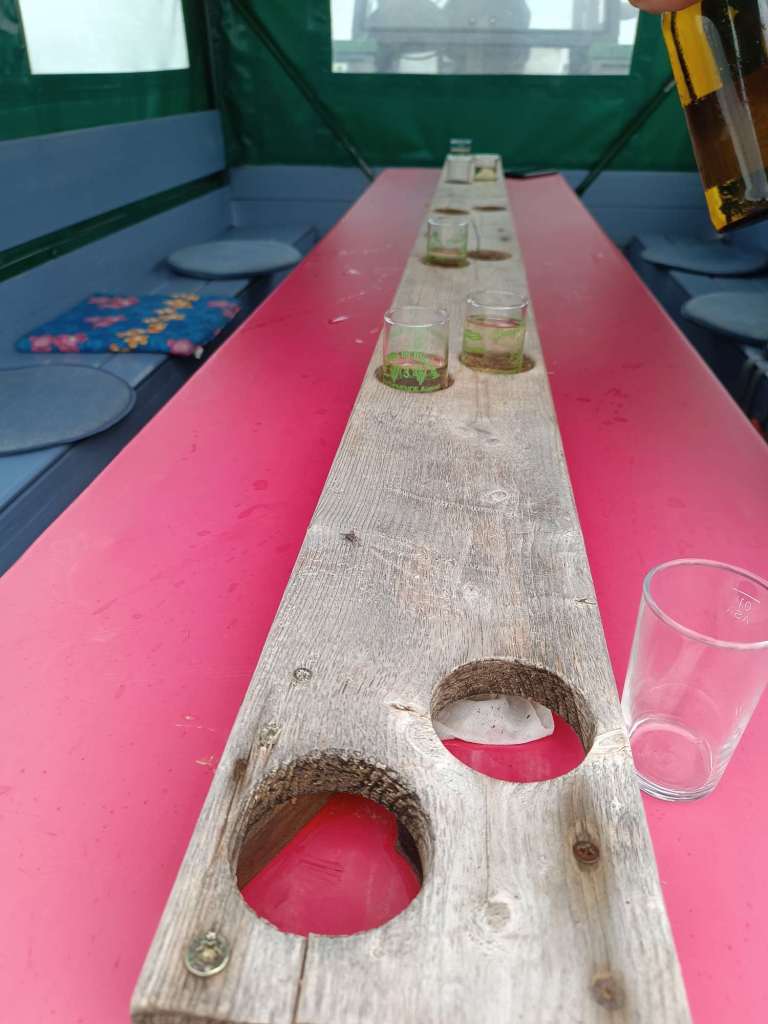 Wir haben eine Planwagenfahrt gemacht – also durch die Reben. Es war sehr sehr holprig, der meiste Wein ging den Bach / Tisch runter. Die Ursache haben wir dann bei einer Rast entdeckt – wir haben es aber noch bis nach Hause geschafft