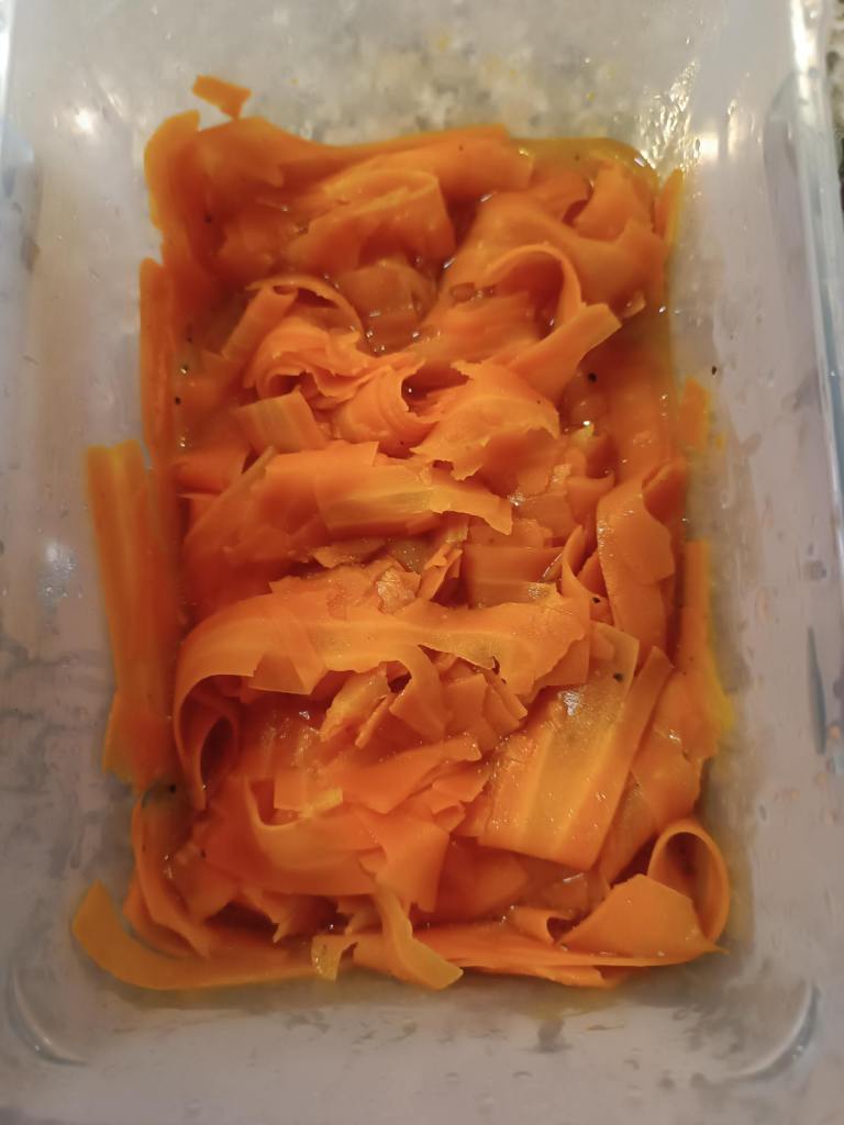 Die Möhren dünn gehobelt und dann? Bekomme demnächst vegetarische Menschen zu Besuch.