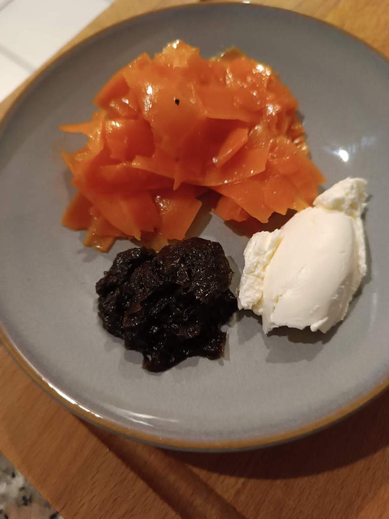 Möhrenlachs mit einer Paste aus Noriblatt und Frischkäse.