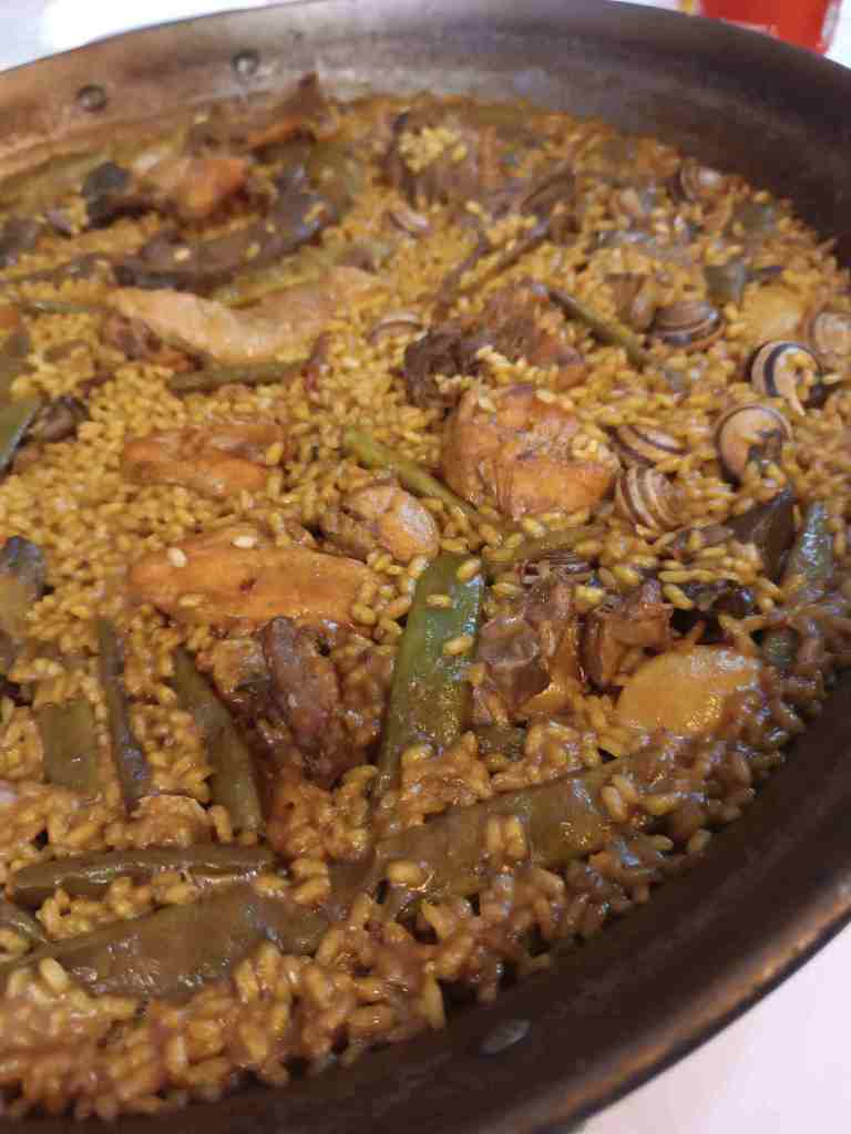 Dann natürlich Paella – eine mit Meeresfrüchten, die andere sehr traditionell – Kaninchen, Ente, Schnecken