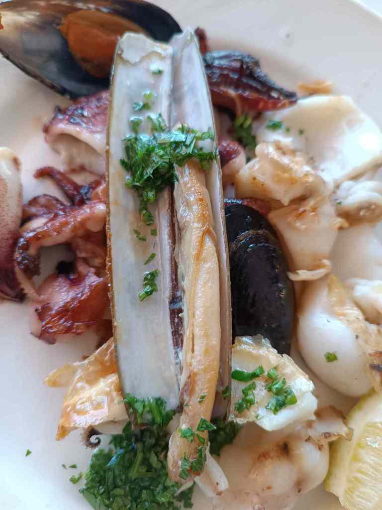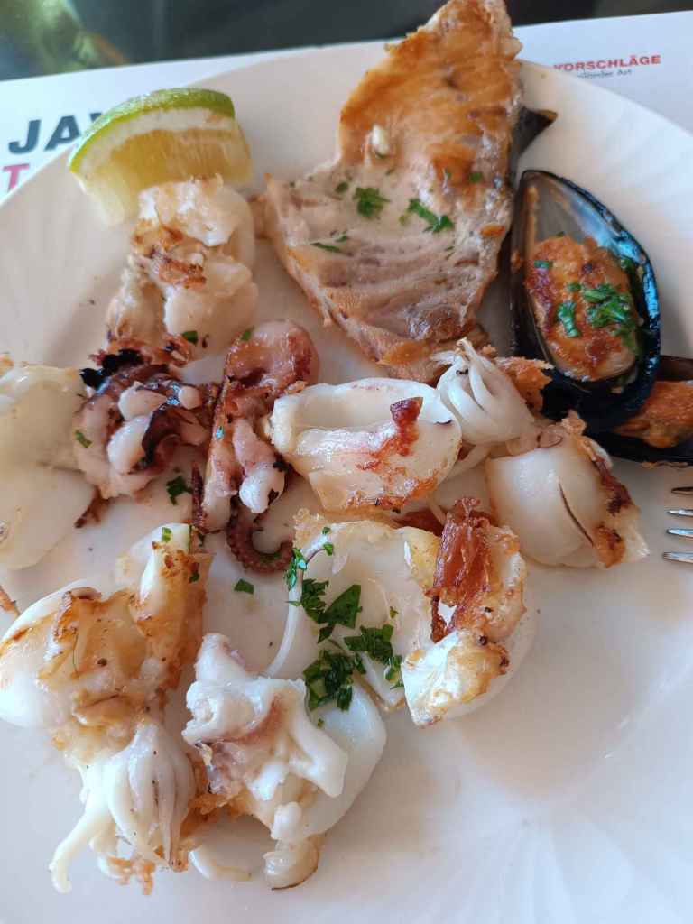 In dem Ort gibt es so ein WOK Restaurant, bisschen chinesisches Essen und viel Fisch / Meeresfrüchte, die man sich braten lassen kann. Da habe ich mich heute an Fisch satt gegessen