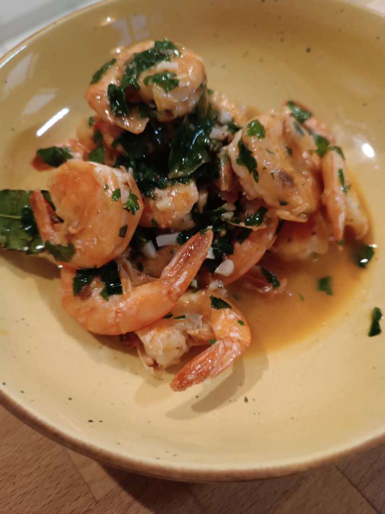 Riesengarnelen mit Zitronensauce und Baguette