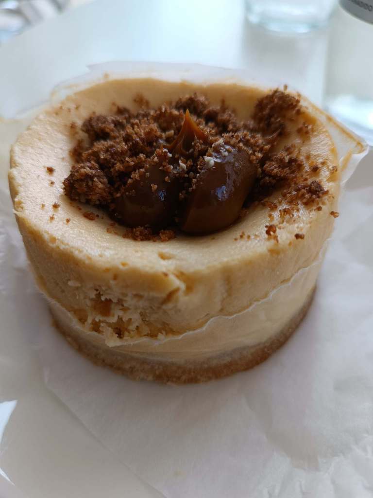 In einem Kaffee Käsekuchen mit dulce de leche (eine Art süße Kondensmilch)