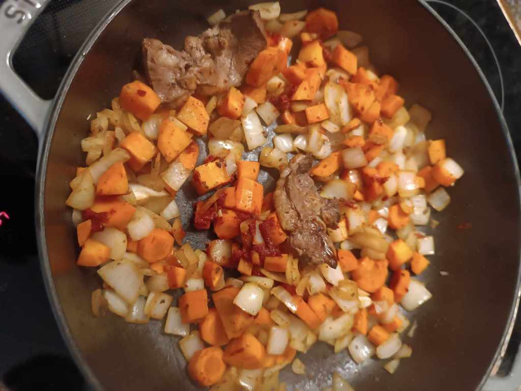 Das war Rinderherz. Ich kann das nur empfehlen, sehr lecker, sehr dunkle schöne Sauce, die Konsistenz vom „Fleisch“ etwas fest.