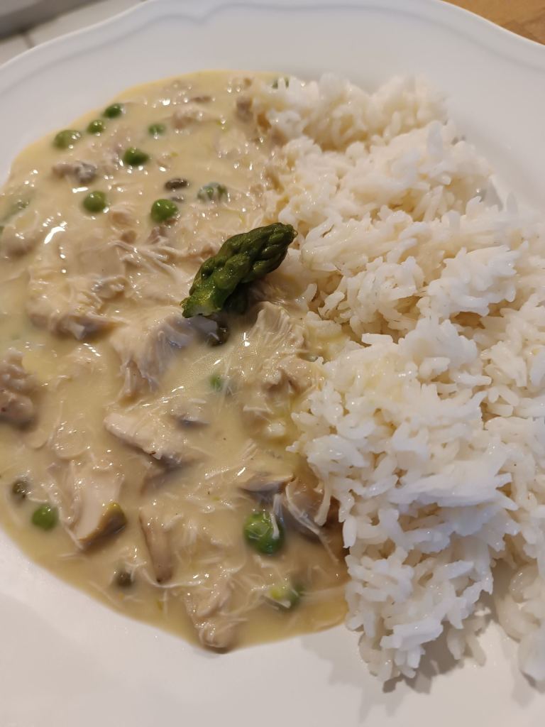 Mein erstes Hühnerfrikassee (mit u.a. grünem Spargel)
