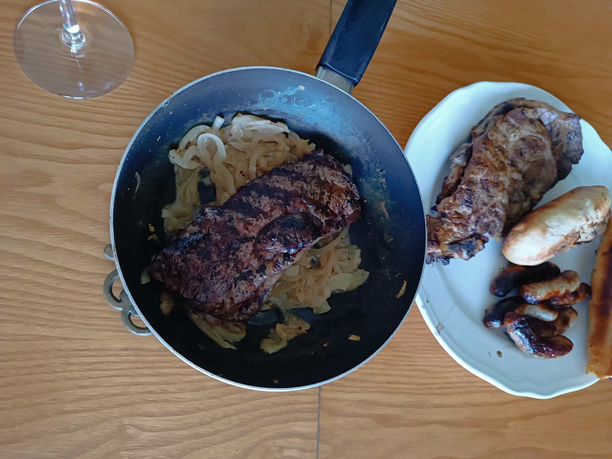 Gegrillt (Würstchen, Rumpsteak). Die Kräuterbutter hat mich komisch angegrinst