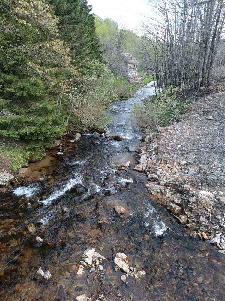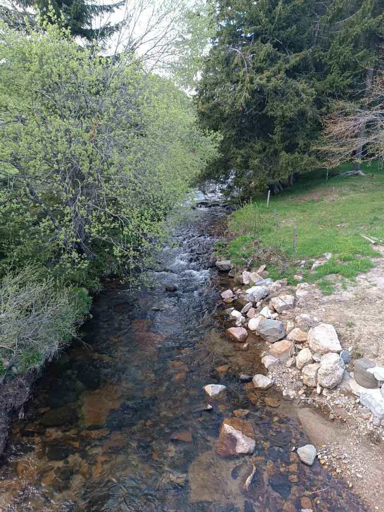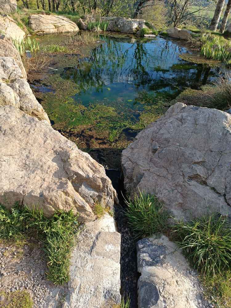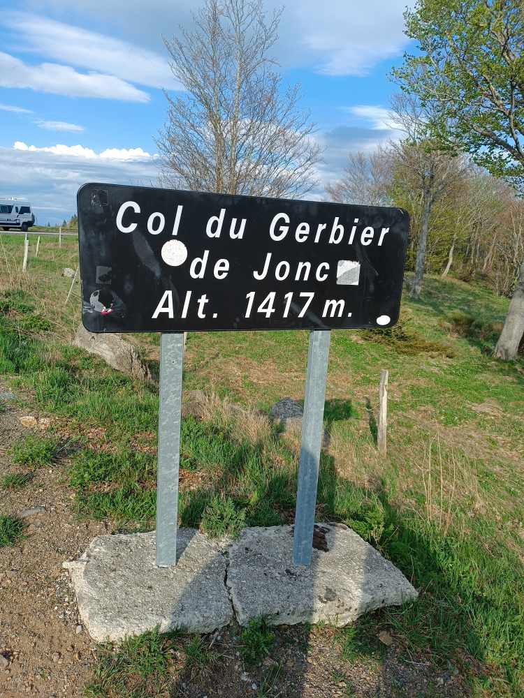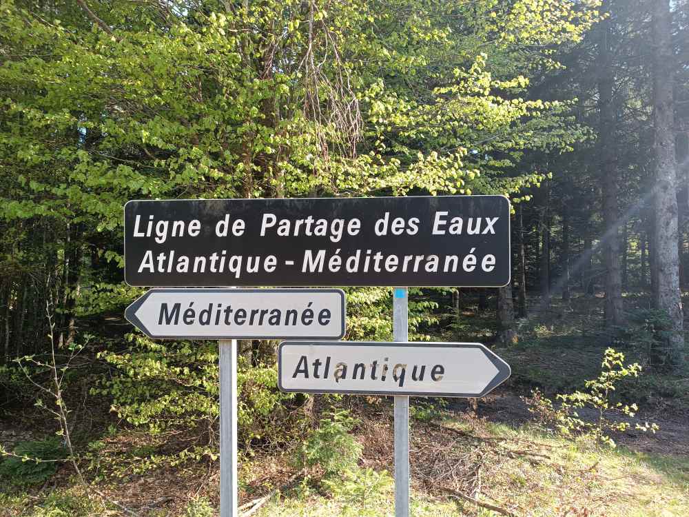 Neben dem Schlafplatz gab es eine Bäckerei, da schnell Baguette und Teilchen geholt. La Loue (noch nicht die Loire, aber schon mal ein Fluss mit L 😉), einen Ort namens Busy (da bin ich gleich weiter), Weinberge bei Arbois. Bresse Hühner (zumindest Statuen, echt habe ich keins sehen und fangen können 🐔). Dann mal ein Stück Autobahn, sonst wird das ja nie was. Dann wieder runter und Landstrasse. Es ging bis 1300 Meter hoch (und war gleich halt). In Lanarce einen Cache gefunden. In einem Käseladen Käse und Wein aus der Gegend (Ardeche) gekauft. Die hatten alles Mögliche, auch die berühmten grünen Linsen aus Le Puy, die kaufe ich auf dem Rückweg. Wasserscheide Mittelmeer – Atlantik, ich also zur Atlantik Seite. Dann nach Sante Eulalia, da in der Nähe sind die Quellen. Es sind drei – die authentische, die geographische, die wahre 😂. Hab alle drei gefunden