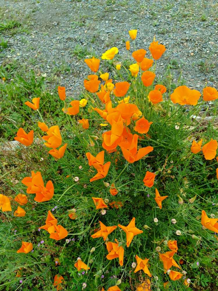 Orangene und gelbe Mohnblumen und eine rote (zumindest denke ich, dass es Mohnblumen sind)