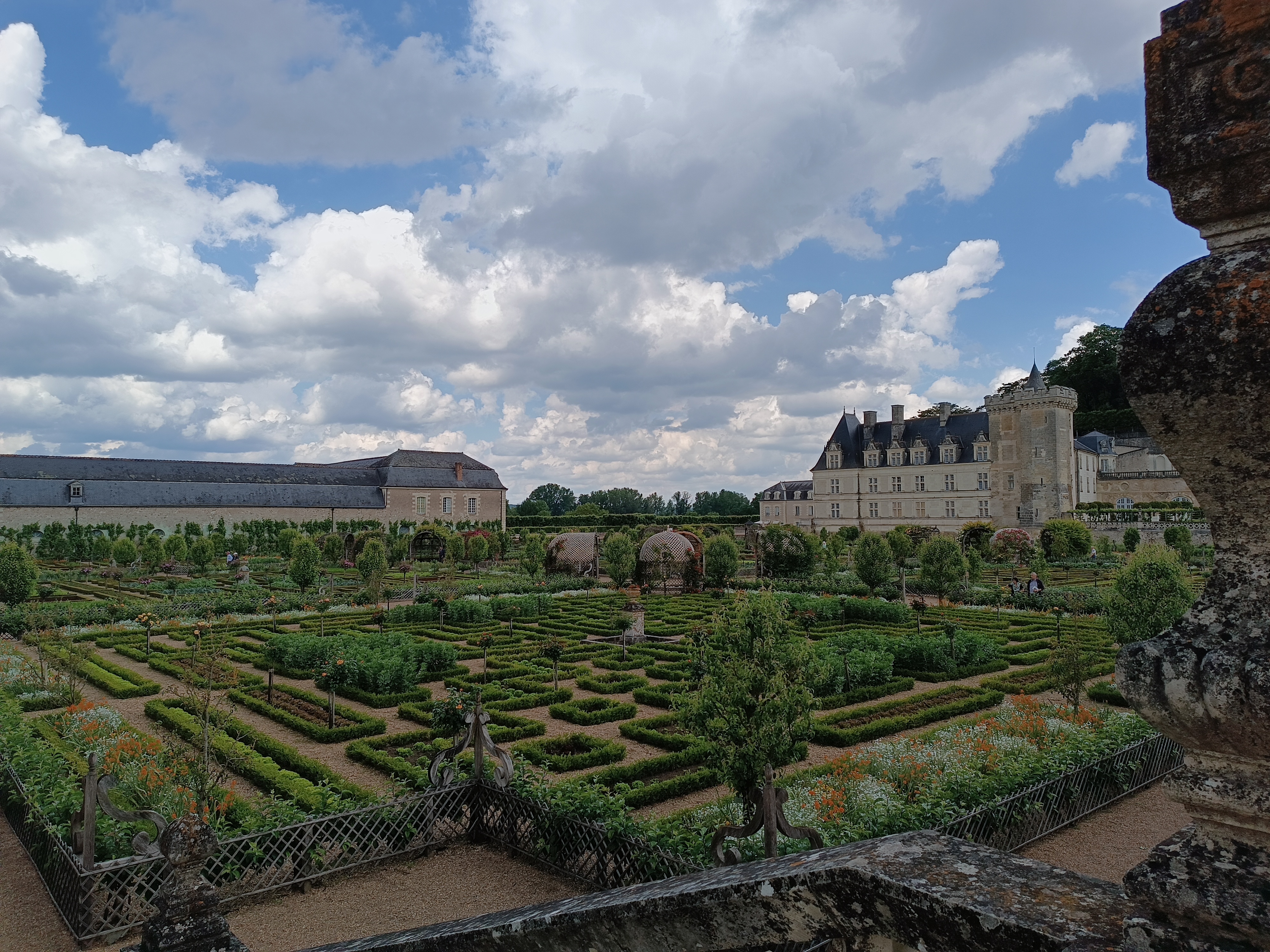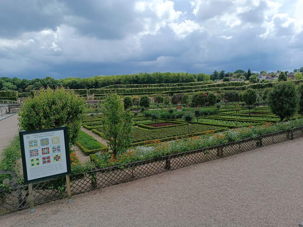 Villandry: Schloss und Garten, aus dem ich – natürlich – durch Regen (also richtig dollen) vertrieben wurde. Die Boutique gab auch nichts her (dachte, ich warte da ein bisschen und geh noch mal los), der Regen hörte nicht auf, also bin ich zurück zum Bus geschwommen.