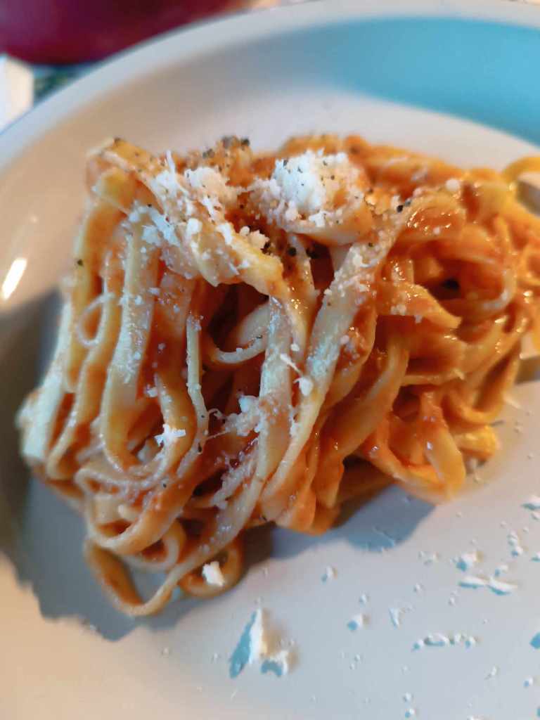 Fettucine aus dem Kühlregal, Bolognese aus dem Konservenregal, Parmesan aus dem „abgepackter, geriebener Käse Regal“. Ergab zusammen eine okayes Essen
