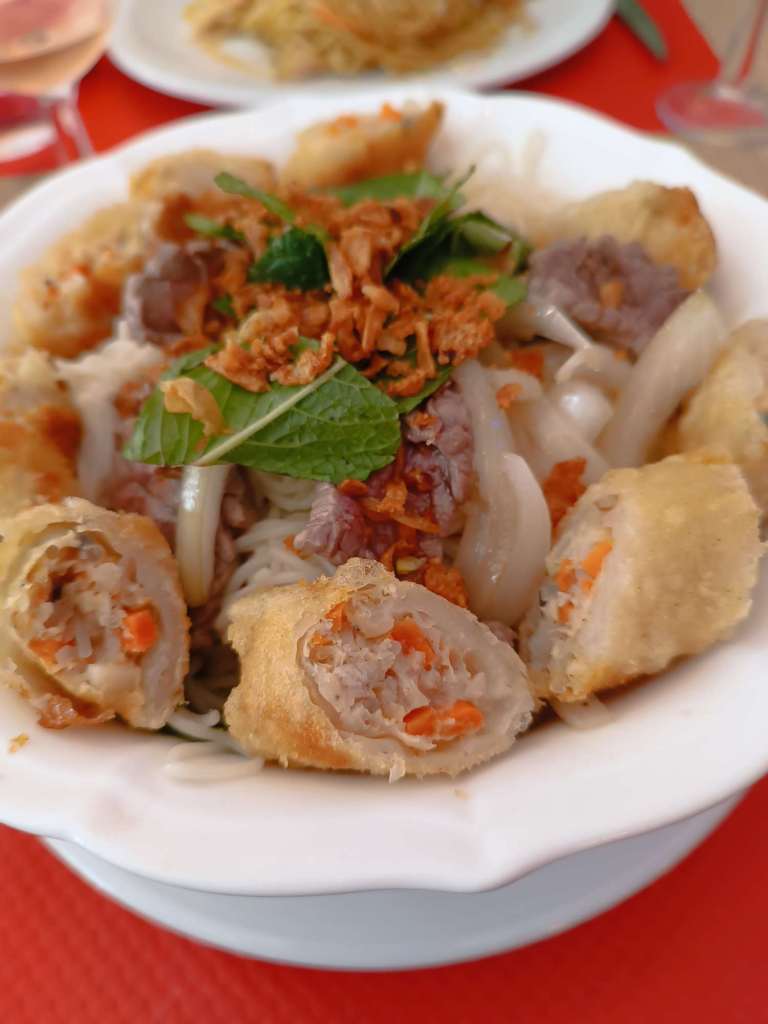 In Anger bei einem Kambodschaner: Bo Bun mit Rindfleisch, sehr lecker.