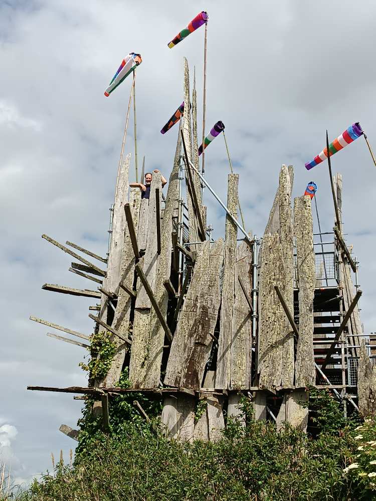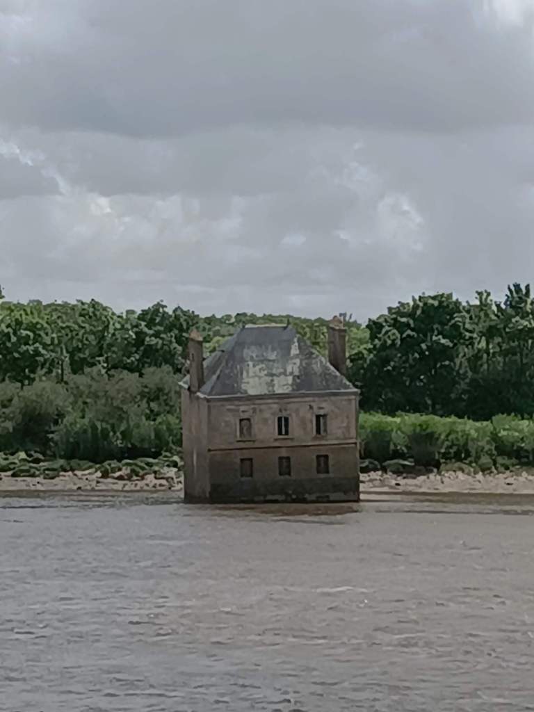 Von Le Pellerin fährt eine kostenlose Fähre über die Loire nach Couëron, da bin ich dabei. Von dort aus kann man das Haus in der Loire sehen, hat ein Künstler (Jean-Luc Courcoult) gebaut. Sieht echt und echt witzig aus.