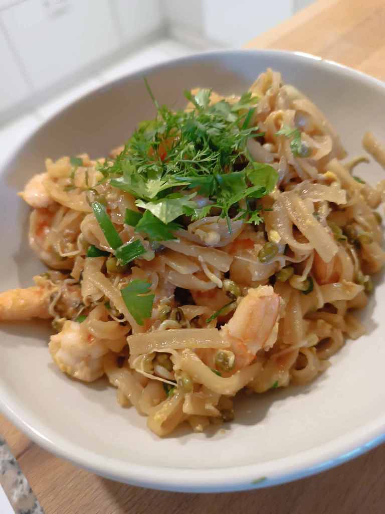 Pad Thai mit Garnelen (und Koriander aus dem Garten)
