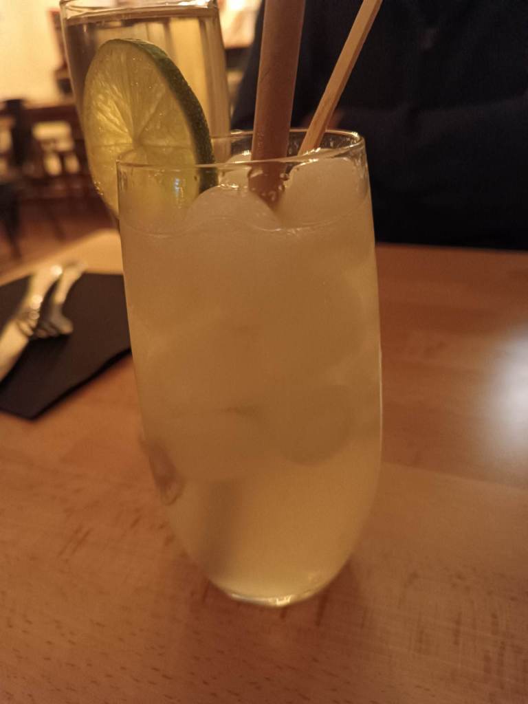 Ein Glas Wein vor dem Essen in einer paar kurz vor dem Restaurant, im Restaurant Gin Fizz, auf dem Heimweg noch einen Pastiz