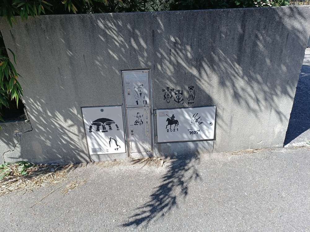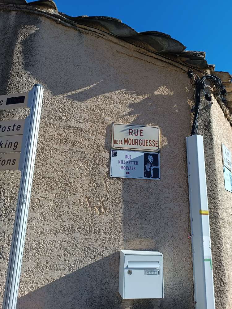 Auf dem Weg zum Station komme ich an diversen Straßenschildern vorbei (es gibt hier immer ein Jazzfestival und die Künstler werden dann „verewigt“). Außerdem gibt es dann so Zeichen an den Häusern, hab nicht genau verstanden, wie das funktioniert