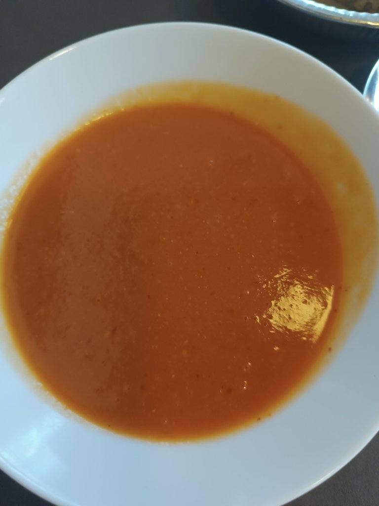 Mittags mit einer Kollegin essen gewesen: Tomatensuppe, Gemüselasagne