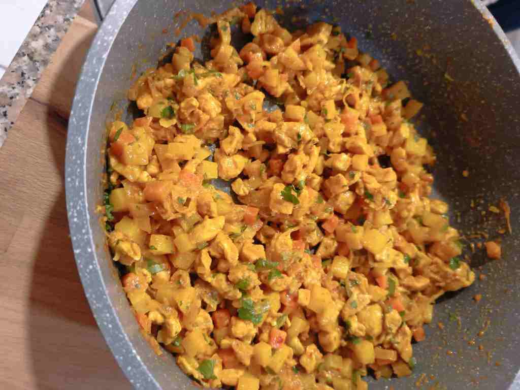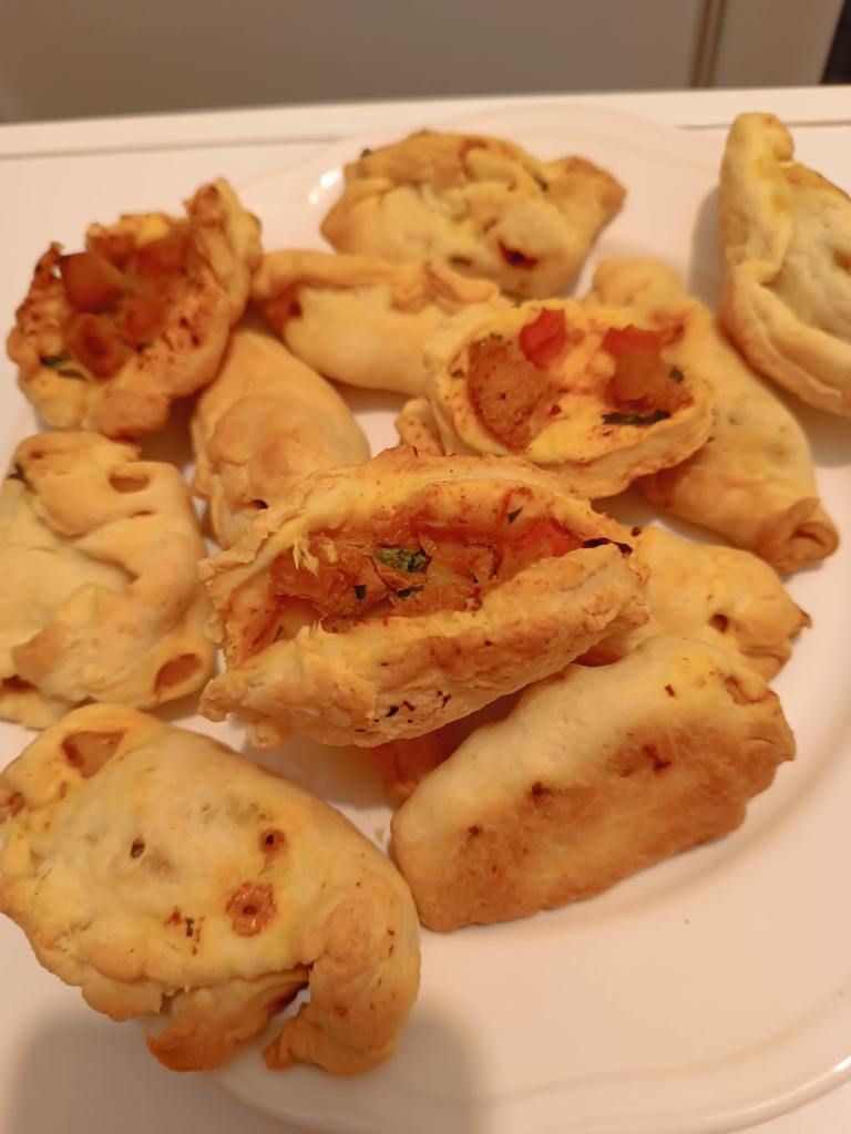 Eine Art Saltenas mit einer thailändischen Füllung. Ich war etwas faul und habe fertigen Teig benutzt