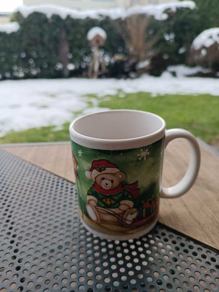 Rest Prosecco von gestern. Glühwein bei Tauwetter, habe gleich mal meine Weihnachtstasse reaktiviert