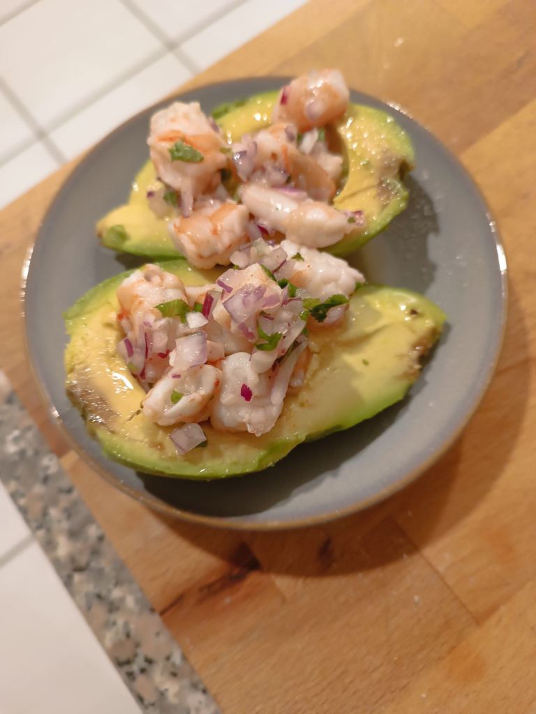 Mit dem Rest vom wursten eine Wurst Sahnesauce gemacht, dazu Pasta. Danach noch Shrimps in Avocado