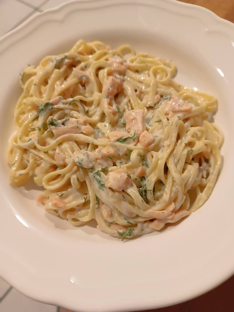 Bavette mit Räucherlachs Creme Fraiche Sauce