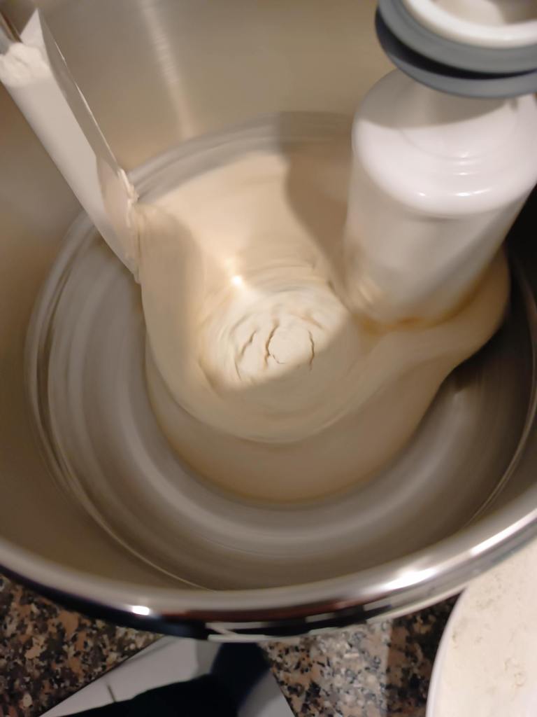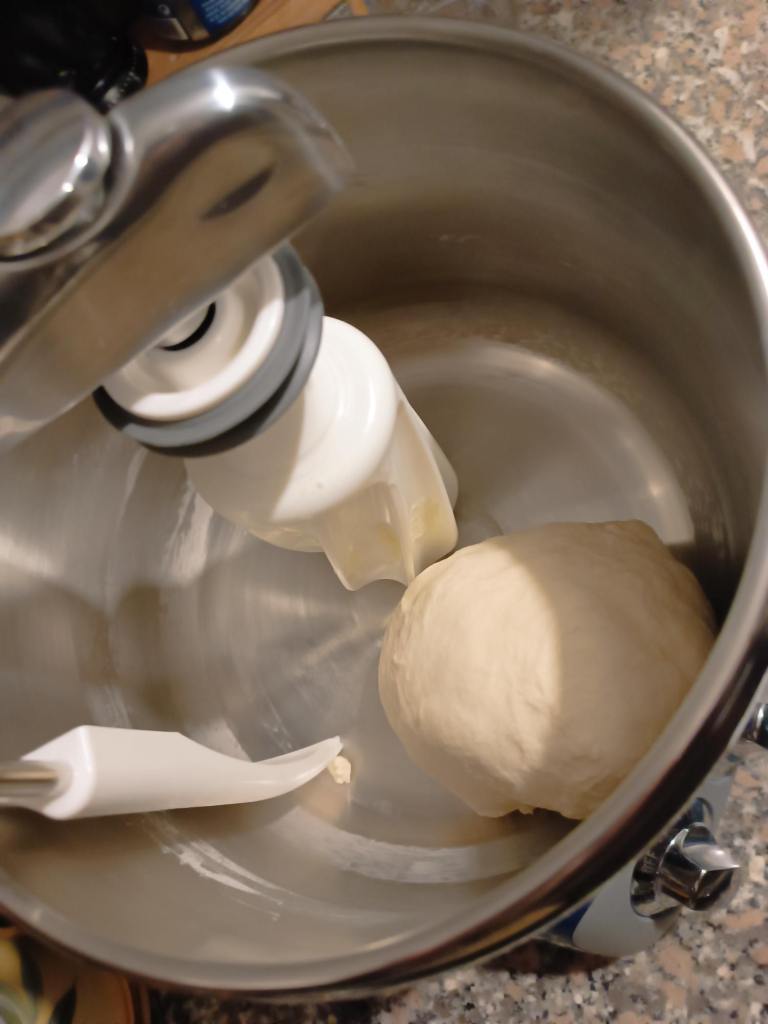 Pizza – Teig gestern schon vorbereitet, dazu die neue Küchenmaschine verwendet. Der Pizzaiolo ist hellauf begeistert (Hach, sie sind so einfach glücklich zu machen).