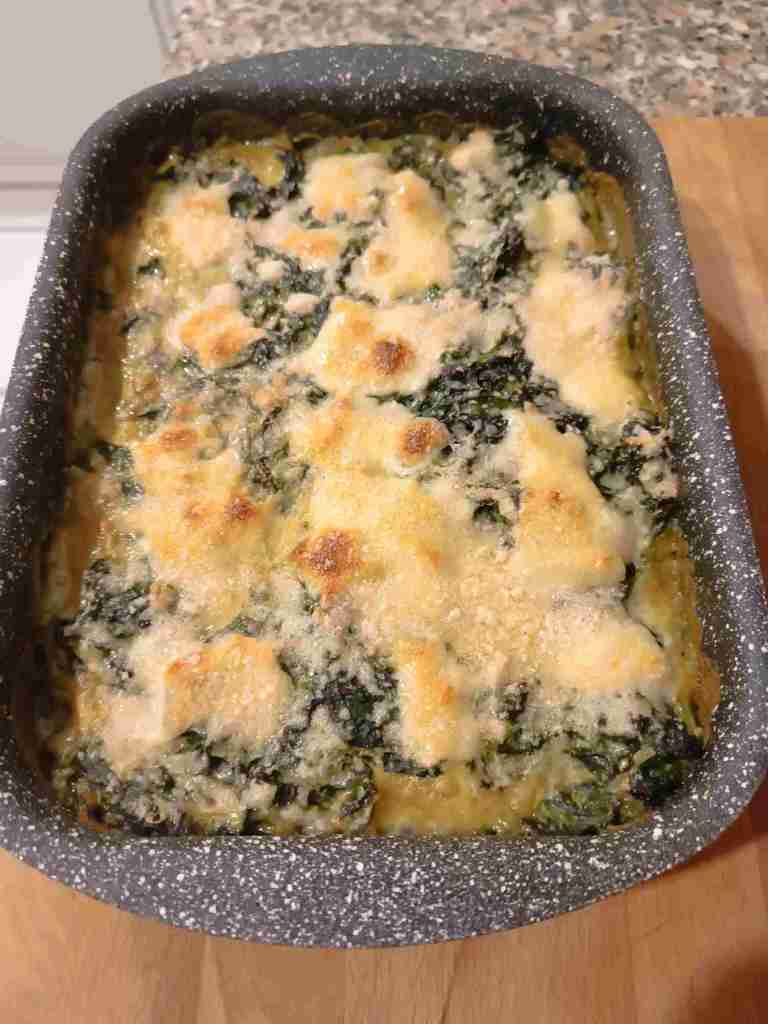 Aus Klossteig, Spinat, Schmelzkäse, Parmesan, Sahne, Zwiebeln einen Auflauf gemacht. Sehr lecker