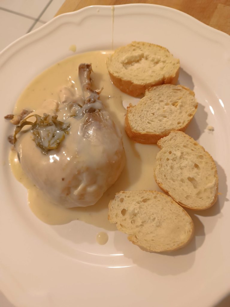 Daraus gab es heute – Poularde pochée a l’Estragon