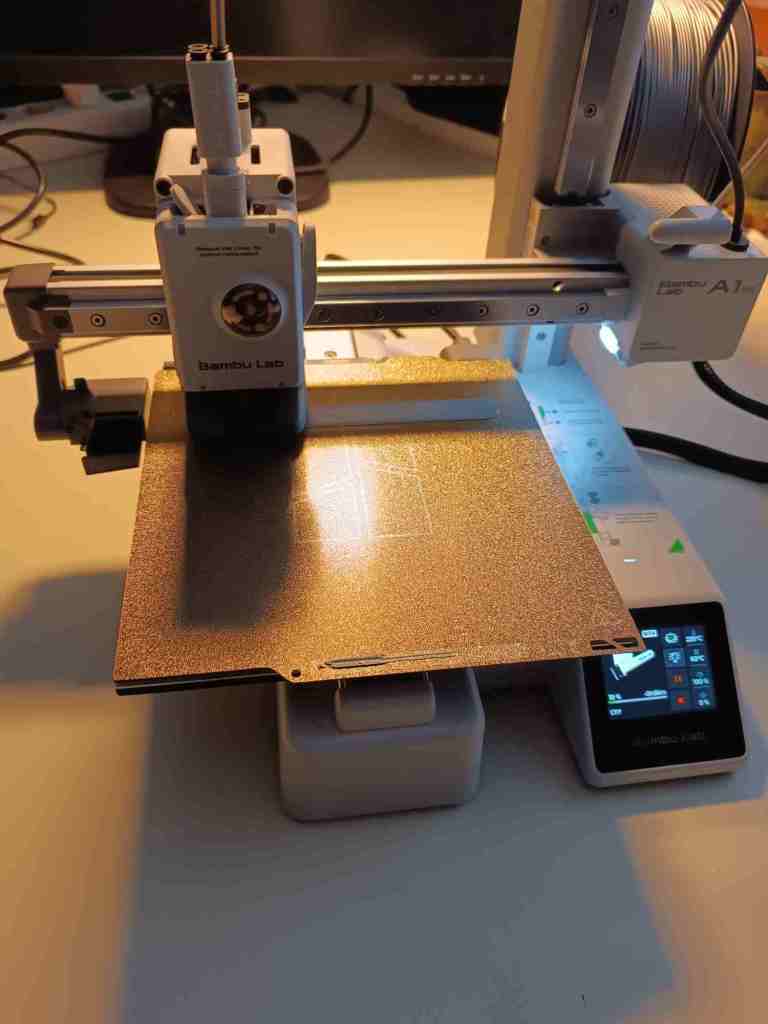 Einen 3 D Drucker. Gleich mal ausprobiert. Einen Schaber gedruckt (den ich nur brauche, weil ich den Drucker habe) und ein Lesezeichen