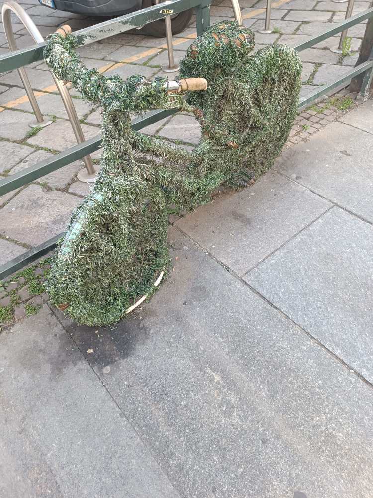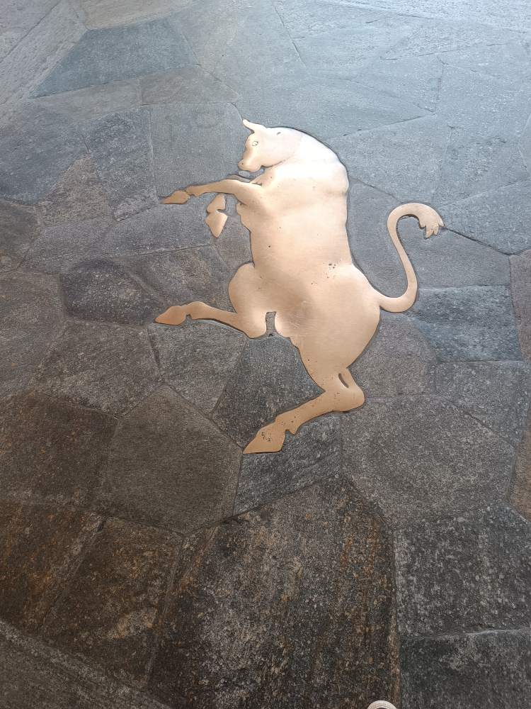 Brücke über den Po, eingewachsenes Fahrrad, eingewachsener Balkon, Schokoladen Geschäfte, den Laden der das Eis am Stiel erfunden hat, einen Stier über dem man sich küssen soll (habe ich natürlich gemacht), Arkaden ohne Ende (wird gut sein, morgen soll es regnen)