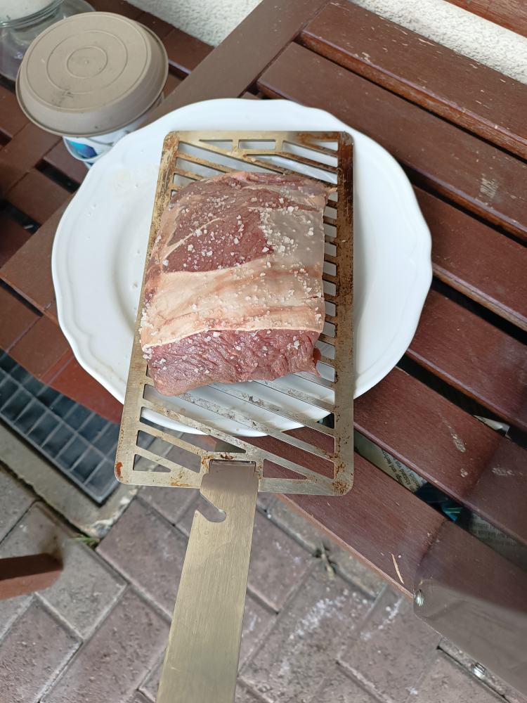 Für das Abendessen habe ich Entrecote gekauft, das mache ich im Heater. Mit der Kräuterbutter.