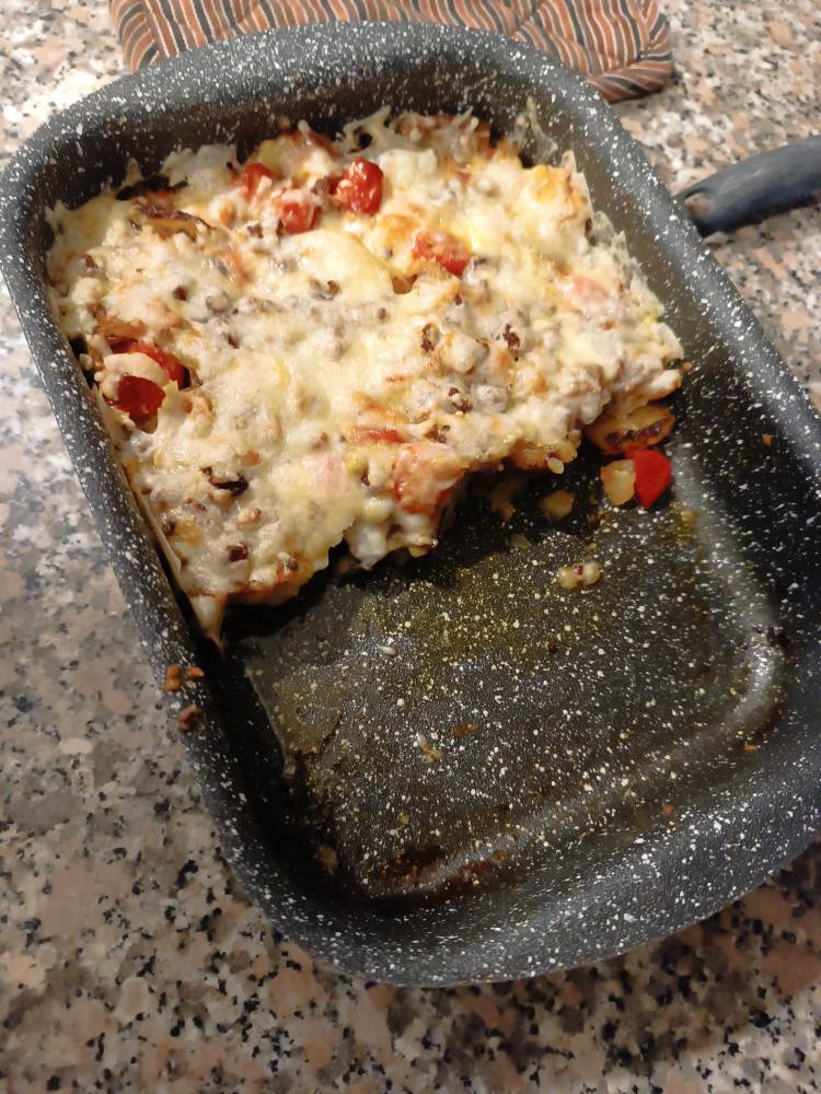 Ich bin ja hier in Italien für Kartoffeln zuständig und habe im Ofen zubereitete Bratkartoffeln (unter Ofenkartoffeln versteht man etwas anderes) zu meiner Spezialität entwickelt. Kommen immer gut an, aber es wird langweilig auf Dauer. An so einen Kartoffel-Hack-Auflauf habe ich gar nicht mehr gedacht, danke für die Erinnerung. Welchen Käse machst du da drauf?