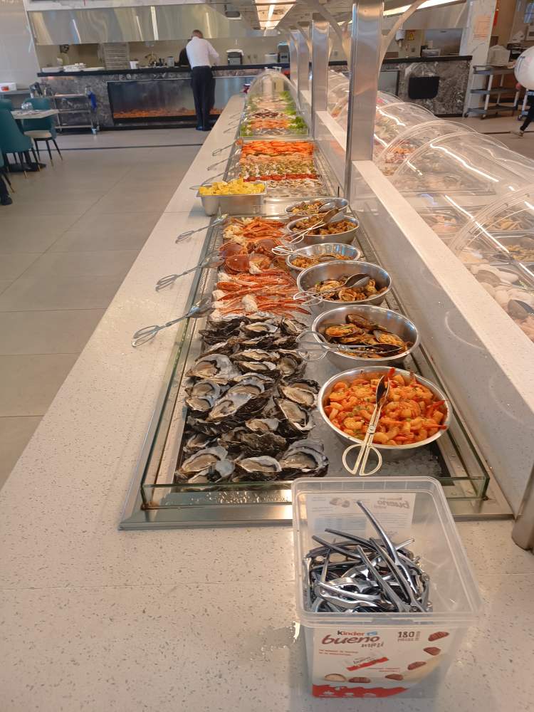 Das Essen auch sehr okay. Ich habe mich an Fisch und Meeresfrüchte gehalten. Und die Desserts natürlich