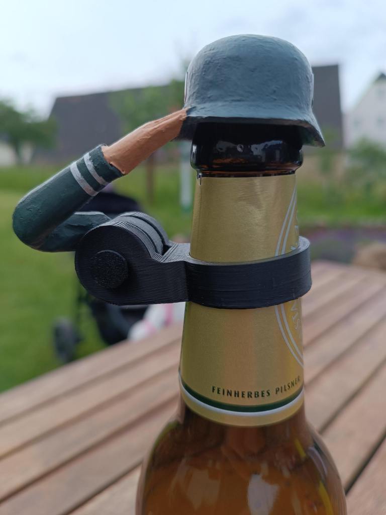 Der Flaschenverschluss ist schon auffällig und nicht besonders nice. Es sei denn, man ist Soldat. Aber auch hier: Es ist ein Wehrmachtshelm.