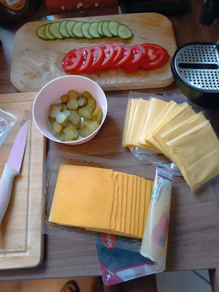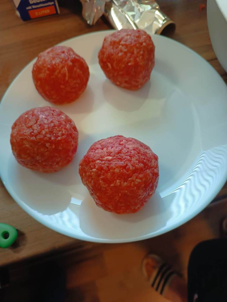 Die Jungs haben gestern Gehacktes und Buns gekauft – smashed Burger