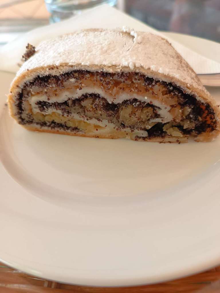 Strudel im Kurbad. Eis im Kurbad. Hirschgulasch ich und Kartoffelpuffer der Chauffeur. Abends Brotzeit mit den gekauften Würsten und Schinken