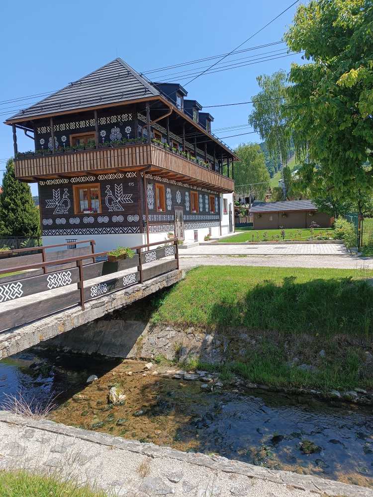 In Cicmany Hauser, die wie Lebkuchen angemalt sind (Kalkfarbe zum Schutz gegen Sonne und Feuchtigkeit), örtliches Museum besucht (konnte man in 2 Häuser gehen). In der Pension, in der ich gegessen habe, war auch eine süße Katze