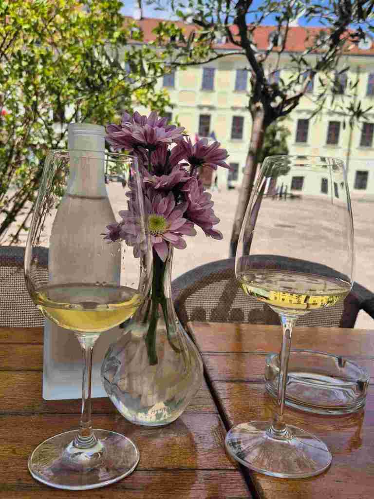 In einer Weinbar Pinot Blanc und Riesling (sehr gute Bedienung, schöne Empfehlungen, Wasser gab es gratis dazu, auch nett)