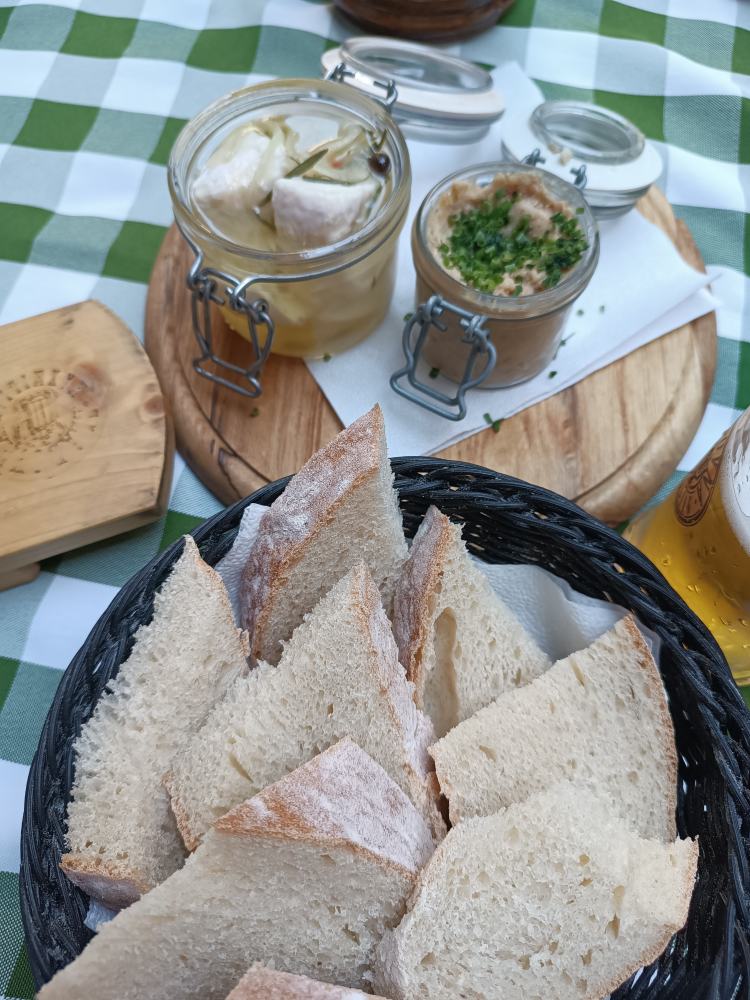 Eingelegter Käse und irgendeine Paste zum aufs Brot schmieren