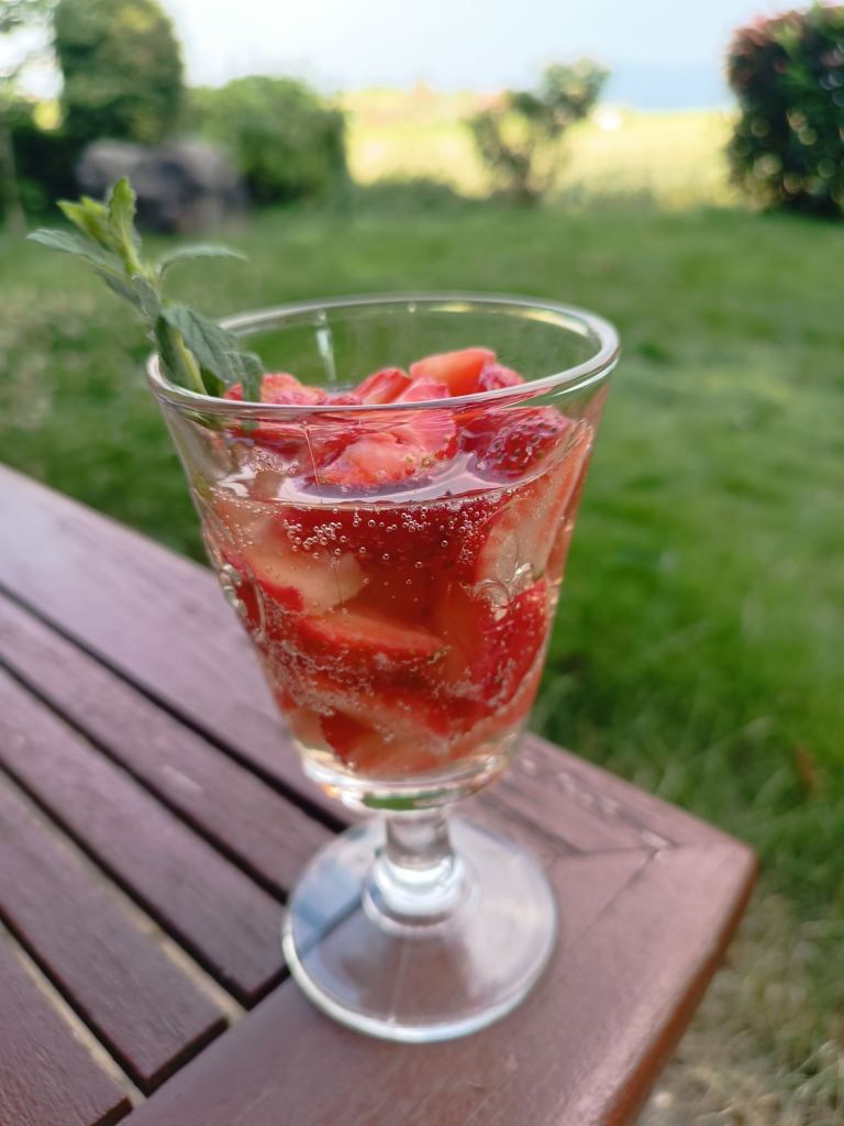 Unterwegs Erdbeeren gekauft und gleich Erdbeerbowle gemacht. Mit Zitronenmelisse aus dem Garten