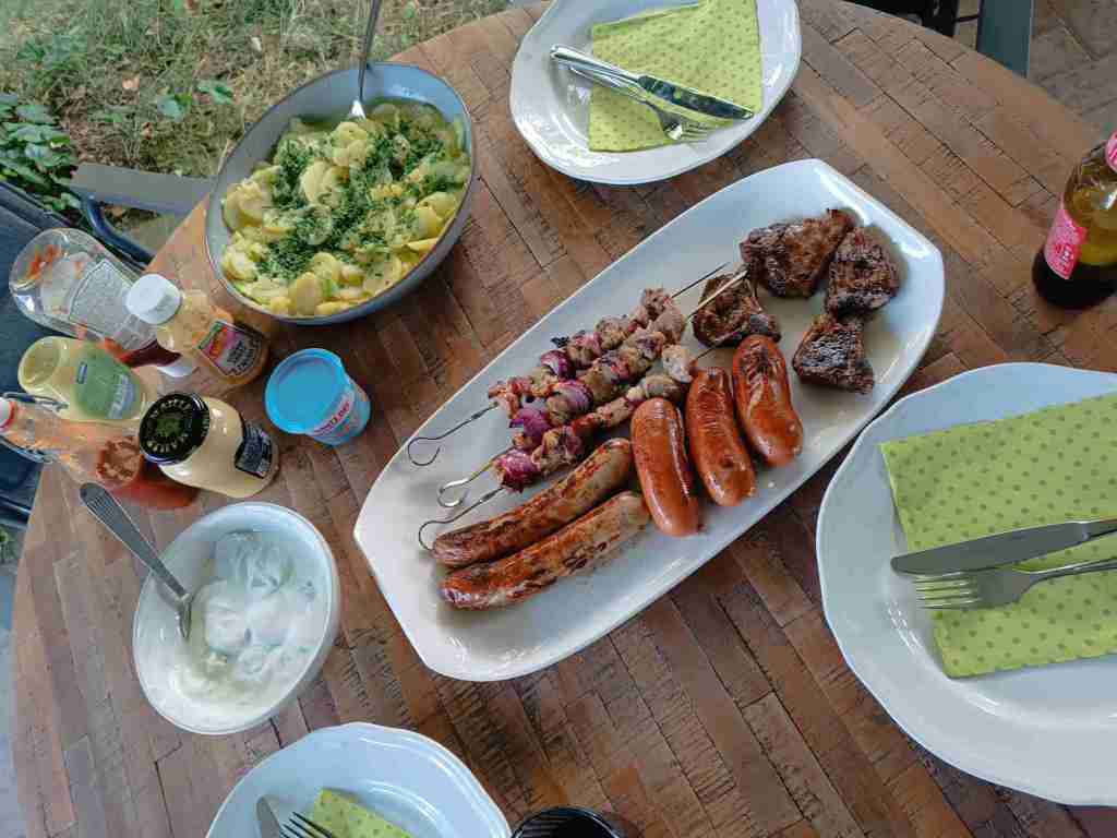 Es wurde gegrillt, die Männer haben noch Kartoffelsalat und Tzatziki gemacht.