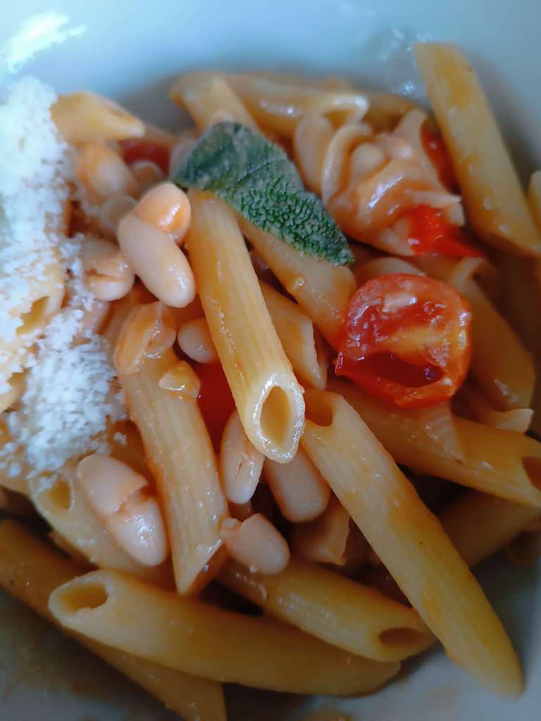 Pasta mit weißen Bohnen, Tomaten und Salbei