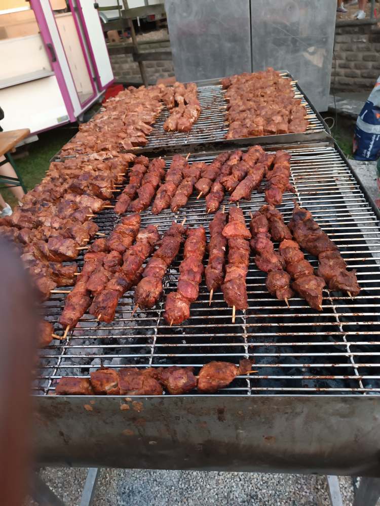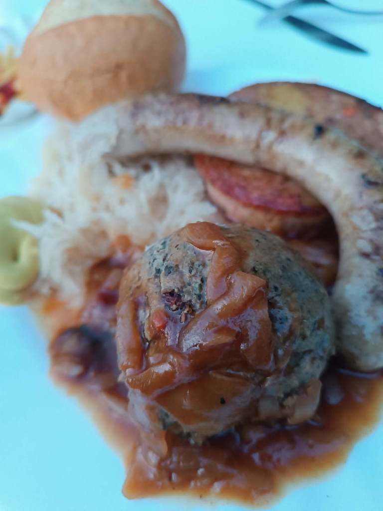 Abends auf dem Weinfest Wurst, Leberknödel, Saumagen  (Essen gab es wahrlich genug)